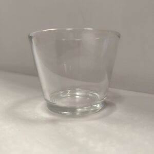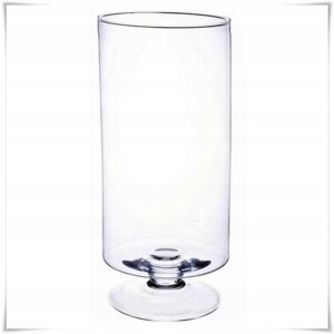 Szklany wazon dostosowany do kompozycji kwiatów lub świecy.
